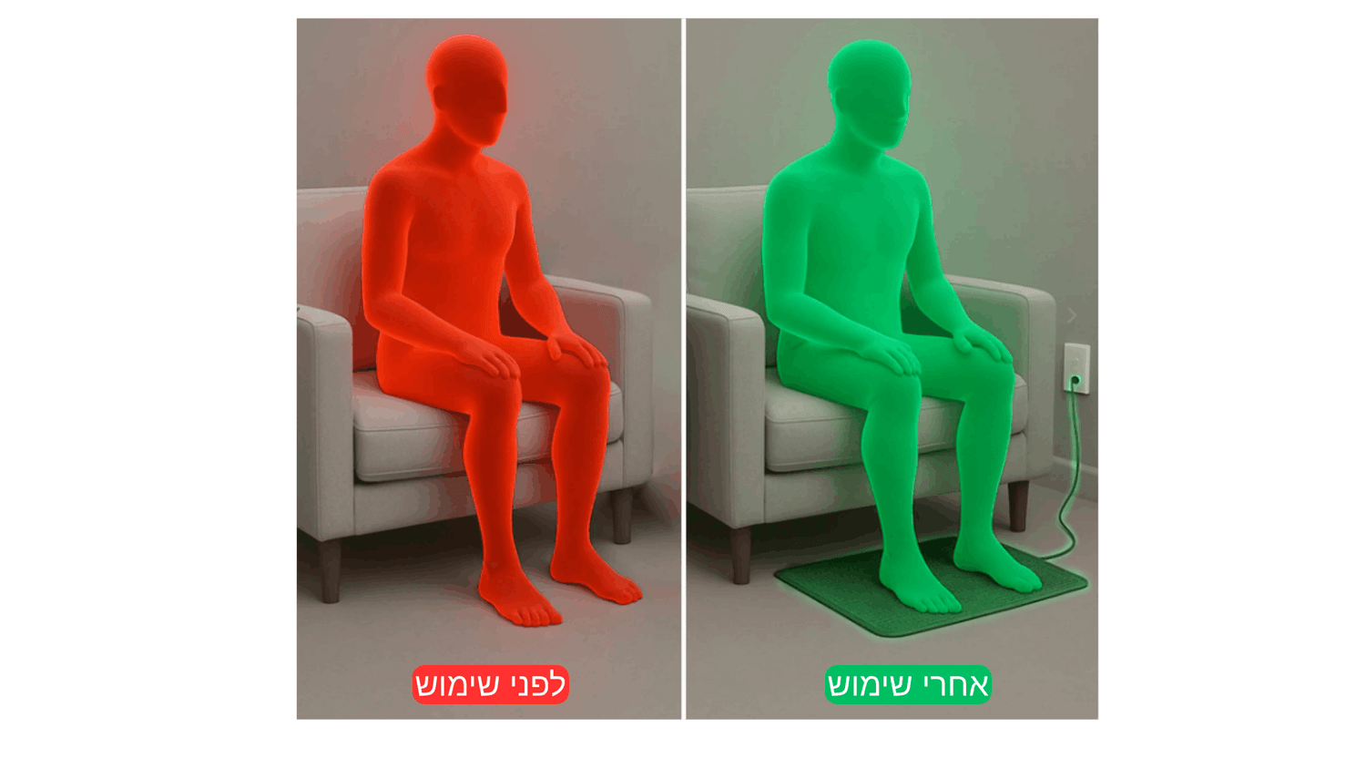 השטיח שעשוי מפחמן איכותי פשוט מוליך זרם חשמלי טבעי שעובר לגוף ומרגיע אותו מסטרס ולחץ והכל קורה בזמן שאנחנו יושבים.
